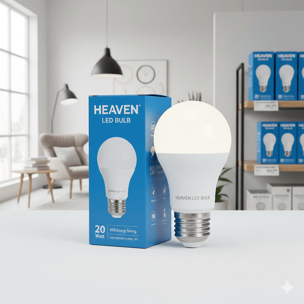 অন্ধকার দূর করুন, সাশ্রয় শুরু করুন। আপনার ঘরকে আলোকিত করুন HEAVEN LED BULB 20 WATT-এর উজ্জ্বল আলোয়! শুধু আলো নয়, এটি আপনার বিদ্যুৎ বিলও সাশ্রয় করবে।